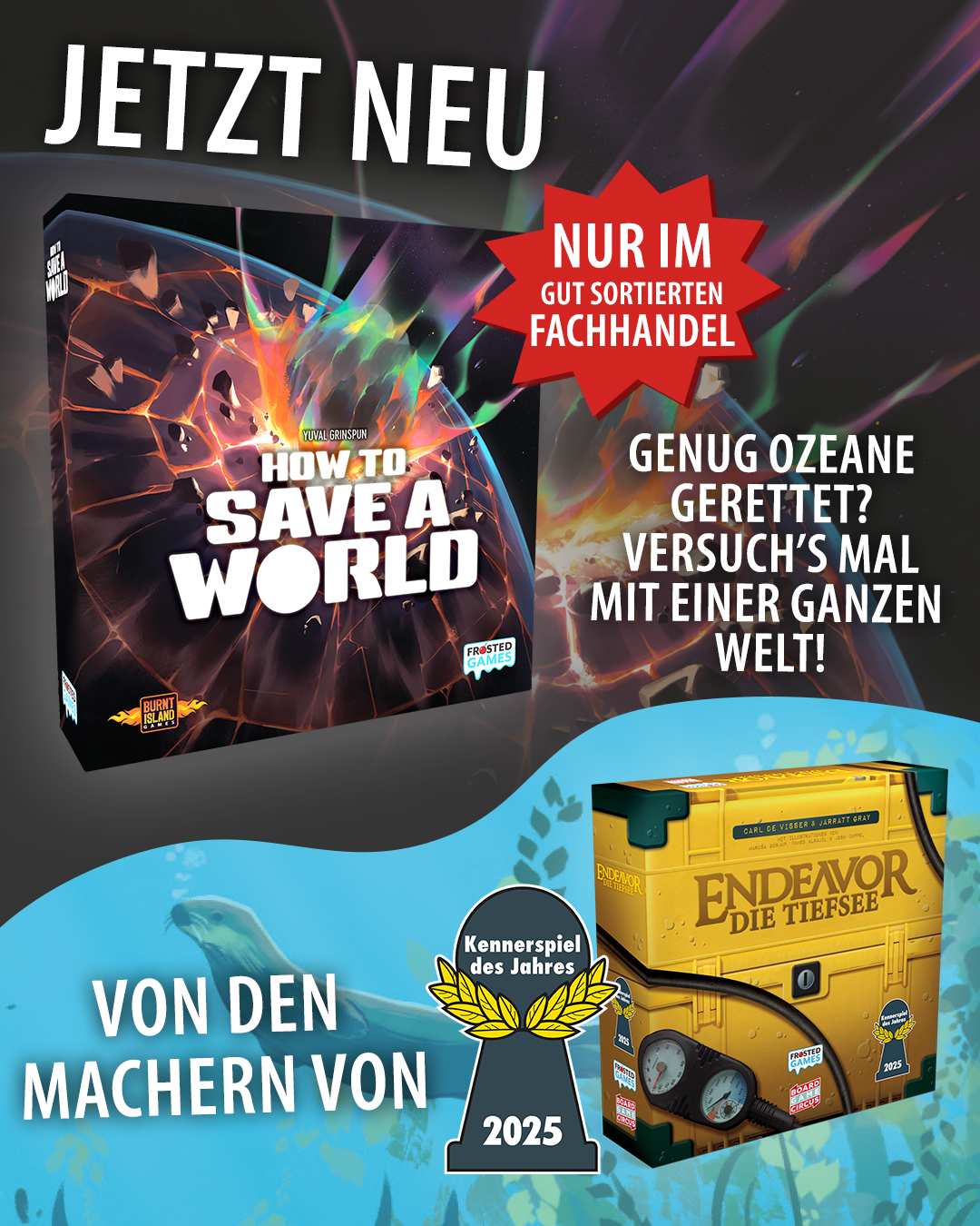 Beide Spiele findet ihr dabei zunächst nur im gut sortierten Fachhandel (stationär oder online). Für How to Save a World wird es jedoch in Kürze ein Deluxe Upgrade Pack geben, das ihr exklusiv in unserem Webshop bestellen könnt.