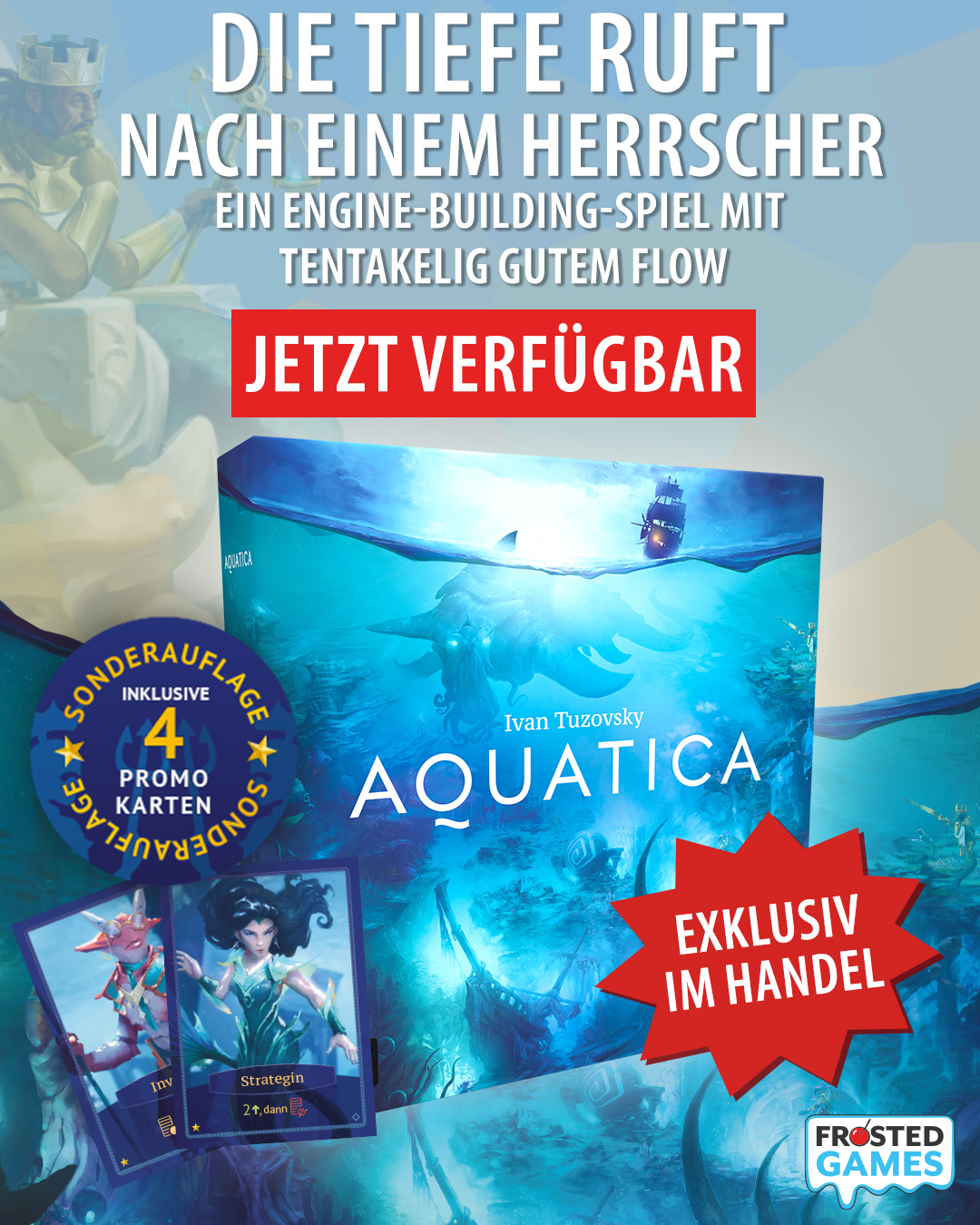 Aquatica ist ein fesselndes Engine-Building-Spiel für 1 bis 4 Meereskönige ab 10 Jahren von Ivan Tuzovsky. In etwa 60 Minuten wetteifert ihr darum, das prächtigste Unterwasserreich zu errichten. Dafür erobert und kauft ihr Stätten, rekrutiert Meeresbewohner und erfüllt knifflige Ziele.