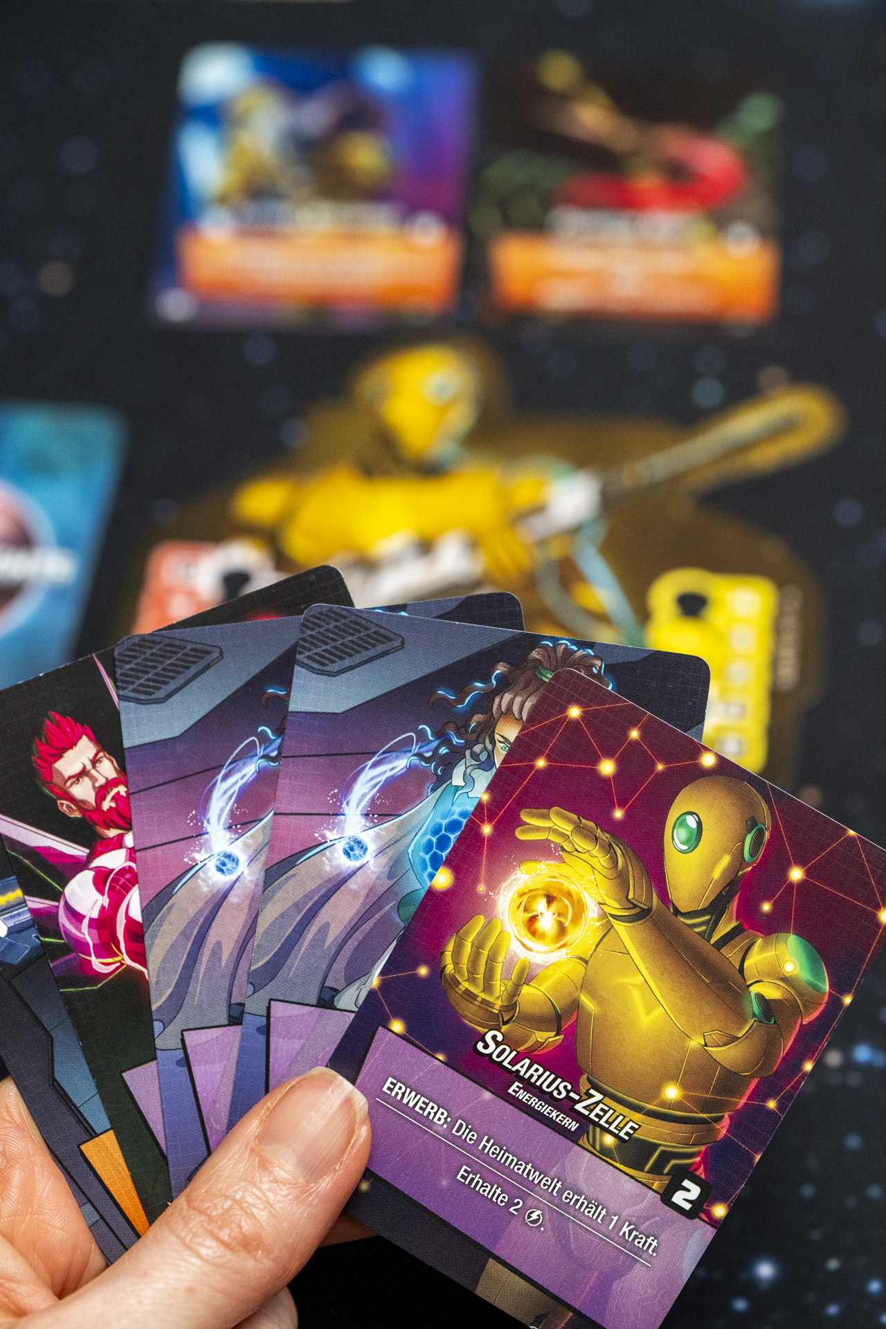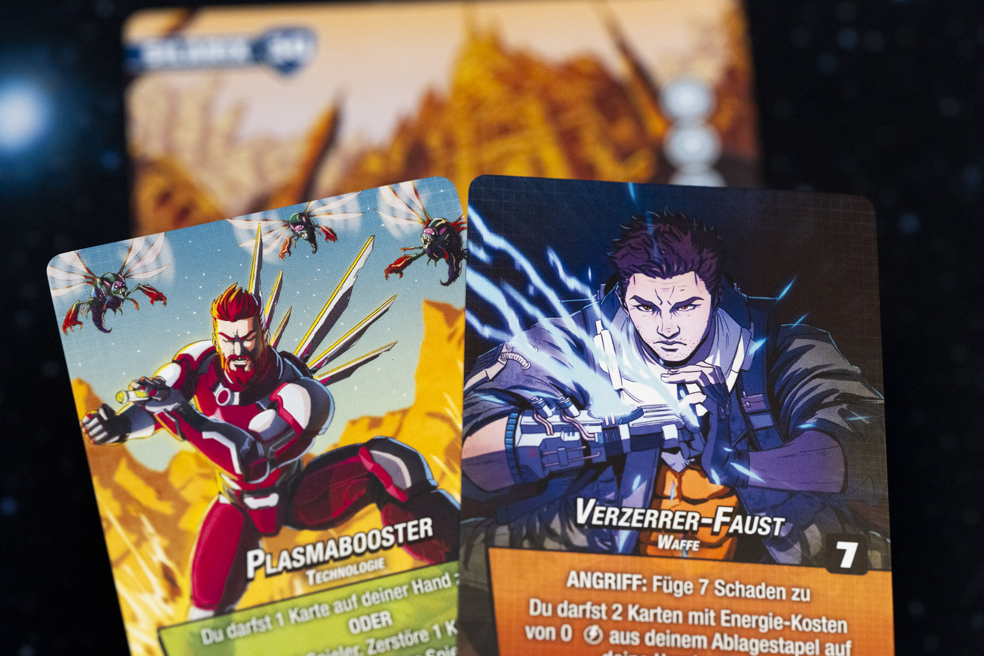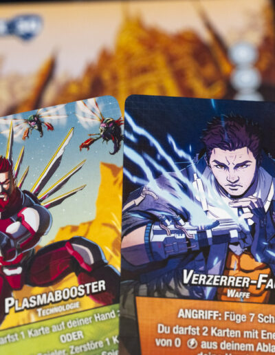 Der Kern bleibt gleich: Ihr spielt gemeinsam gegen einen gnadenlosen Boss (davon gibt’s gleich vier im Basisspiel!) und optimiert euer eigenes Arsenal – aber: Deck mischen ist hier galaktisches No-Go! Jede gezogene Karte ist das Ergebnis eurer letzten Entscheidungen. Heißt: Jedes Mal, wenn ihr den Nachziehstapel umdreht, seid ihr selbst schuld, was jetzt kommt.