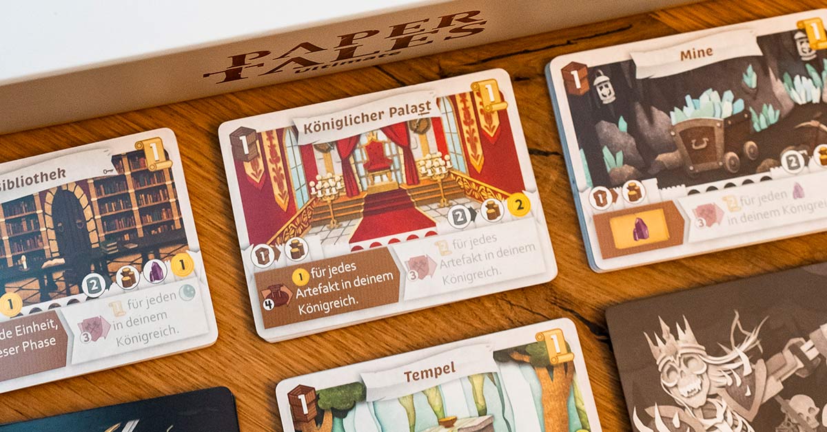 Dank der enormen Kartenvielfalt und der dynamischen Alterungsmechanik gleicht keine Partie der anderen! Paper Tales Ultimate ist das perfekte Spiel für dich, wenn du große strategische Tiefe in kompakter Spielzeit suchst. Dieses Spielerlebnis hat es bereits 2019 auf die Empfehlungsliste für das Kennerspiel des Jahres geschafft und hat in unseren Augen seine Faszination nicht eingebüßt. Worauf wartest du noch – greif zur Krone und führe dein Königreich zu Ruhm und Ehre!