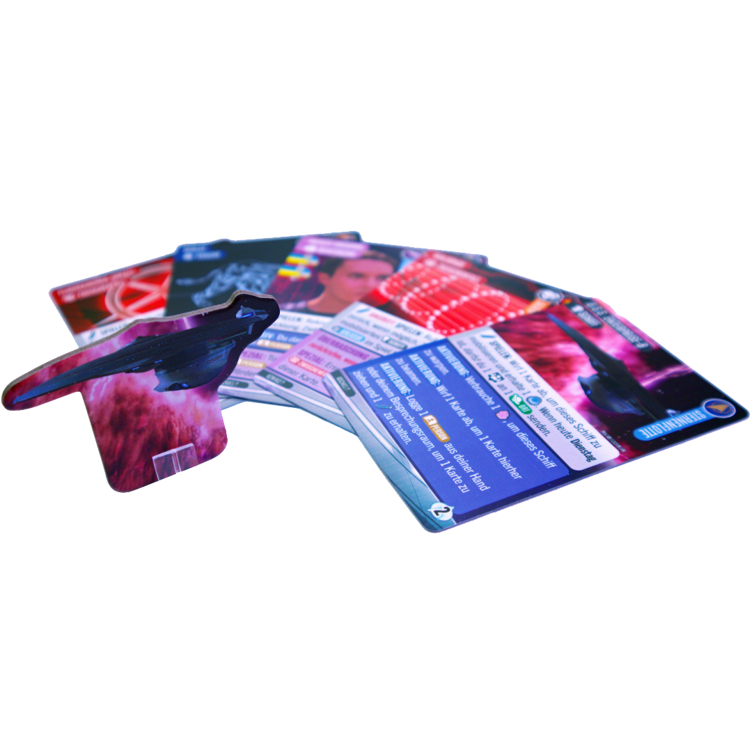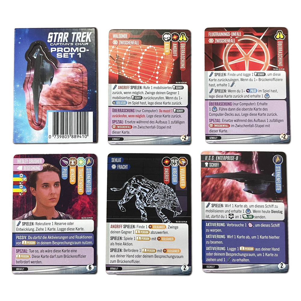 Dieses Promo-Pack enthält 5 neue Karten und 1 neues Raumschiff-Standee für Star Trek™: Captain’s Chair.