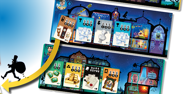 Schafft es der Meisterdieb, unbemerkt und ganz allein an seinem gewählten Ort aufzutauchen, darf er die gesamte dort liegende Beute exklusiv für sich beanspruchen – und erhält obendrein oft einen tollen Bonus! Doch wehe, die anderen Diebe haben richtig geraten!