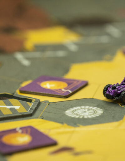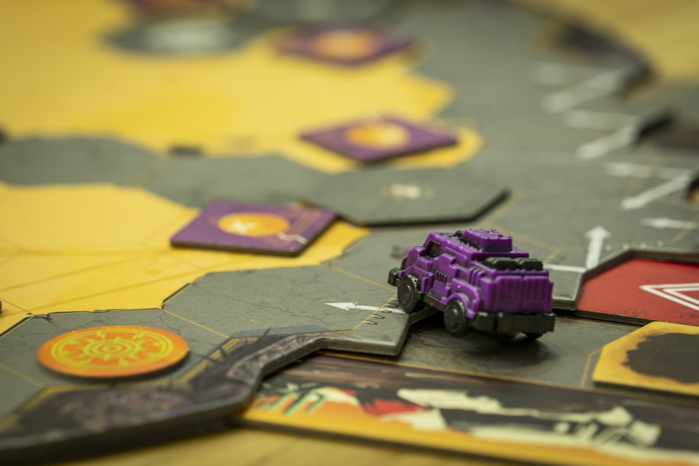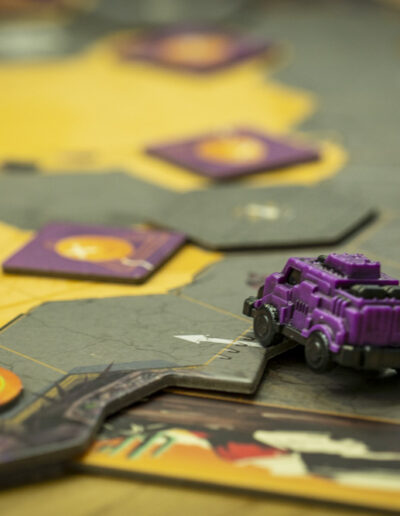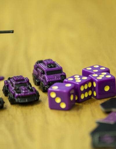 Willkommen in der Wrackedrale erweitert das Gemetzel um einen kompletten Satz violetter Fahrzeuge, Würfel und Spielmaterialien.