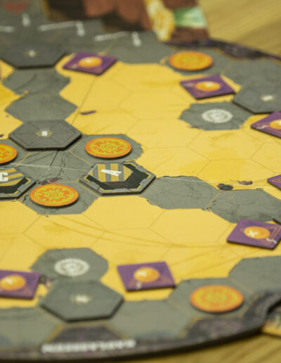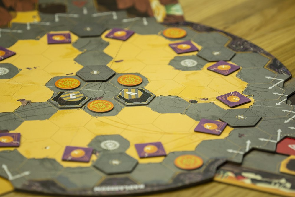 Nachdem du auf einem regulären Streckenabschnitt in die Arena gefahren bist, geht das Chaos los: Auf den Hexfeldern der Wrackedrale sind deine Bewegungen wendiger und du findest allerlei Extras.