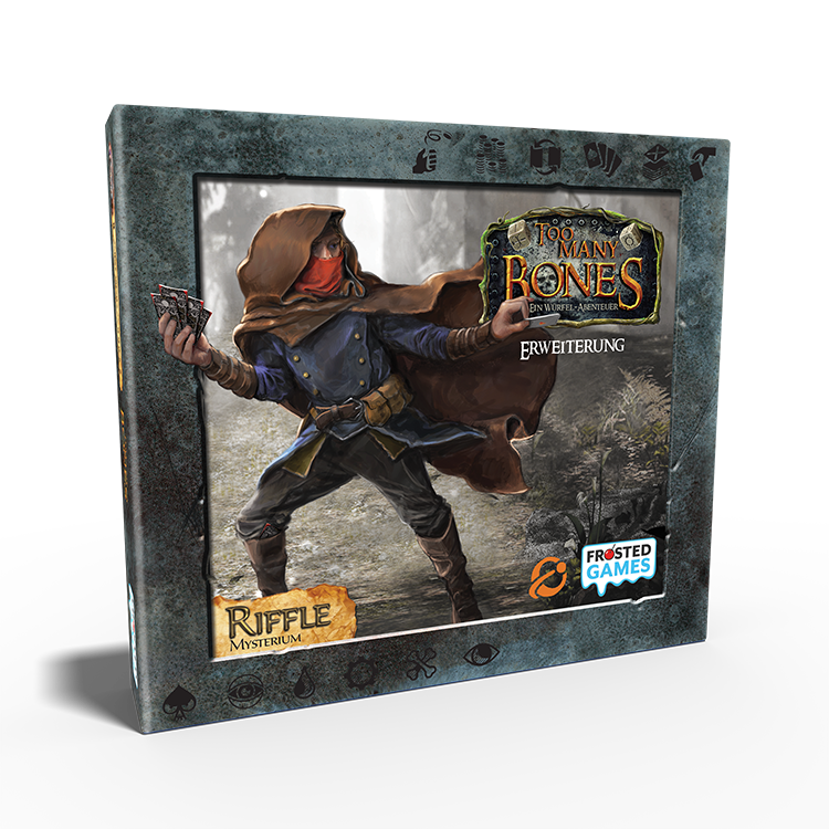 Riffle bringt einen völlig neuen, genialen Dreh in dein Too Many Bones-Erlebnis. Als charismatischer Meister der Illusion und des Glücksspiels tauscht er einen Teil seiner Skill-Würfel gegen ein echtes, eigens illustriertes 52-Karten-Poker-Deck ein.