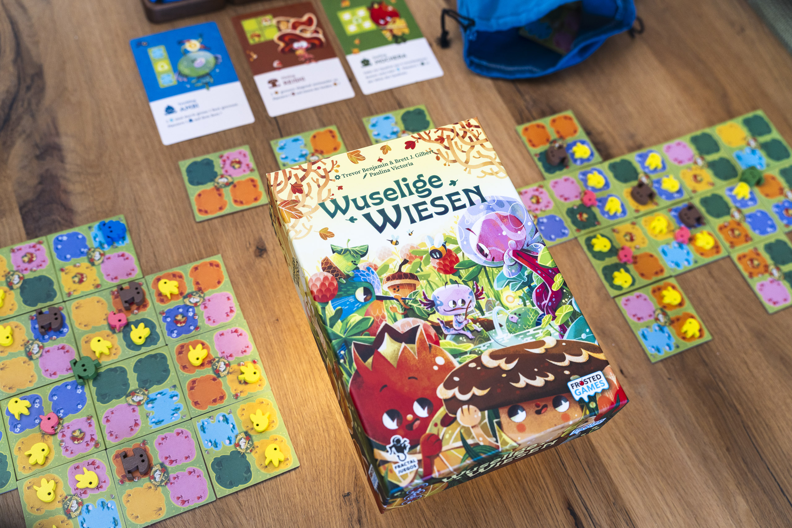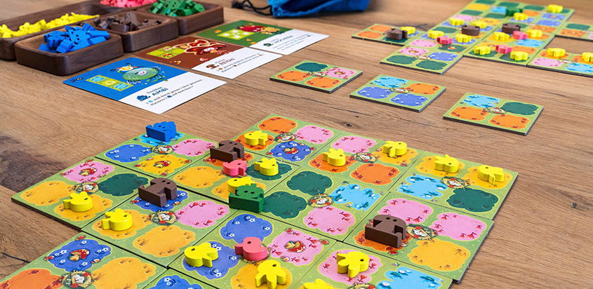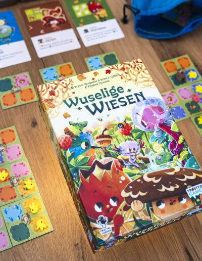 Mit seinen extrem zugänglichen Regeln ist Wuselige Wiesen in Minuten erklärt, bietet durch die räumlichen Puzzle-Entscheidungen aber genau die Sorte belohnender taktischer Tiefe, die auch erfahrenere Brettspieler:innen schätzen!