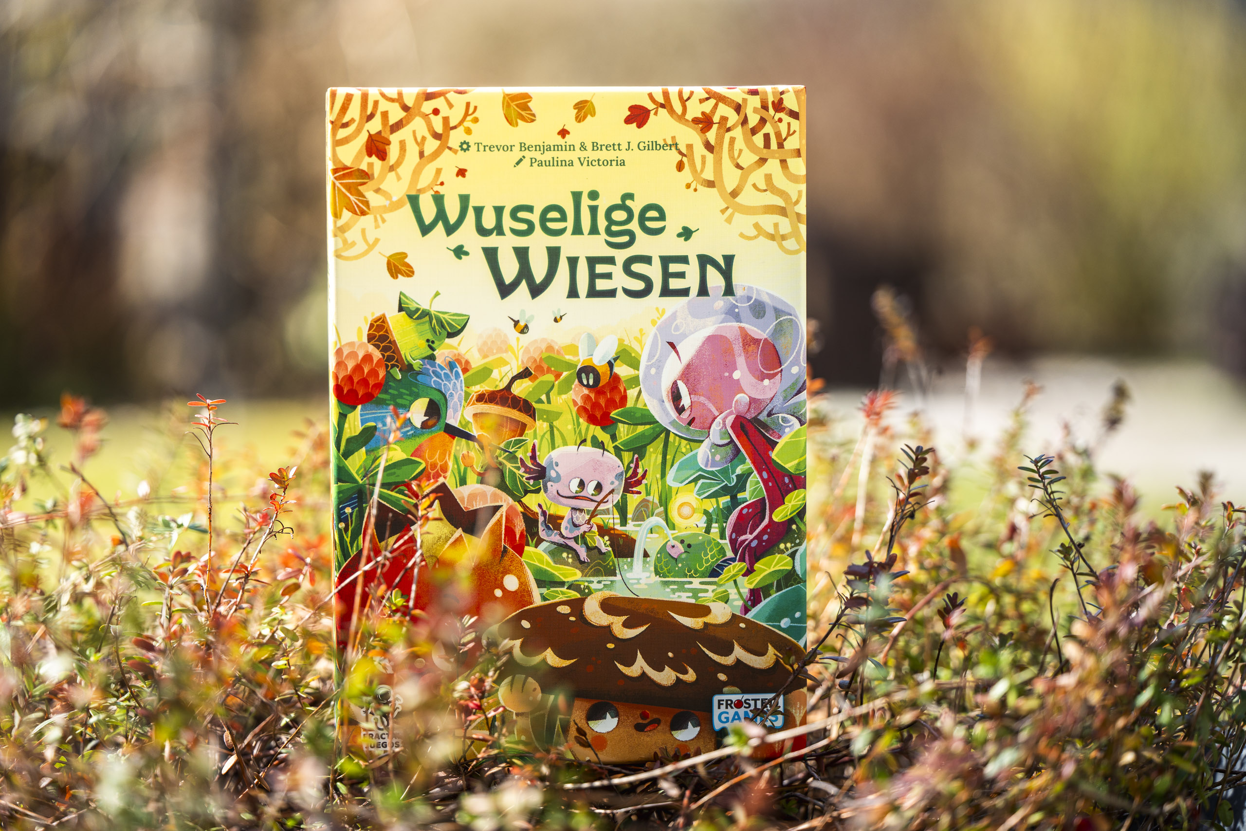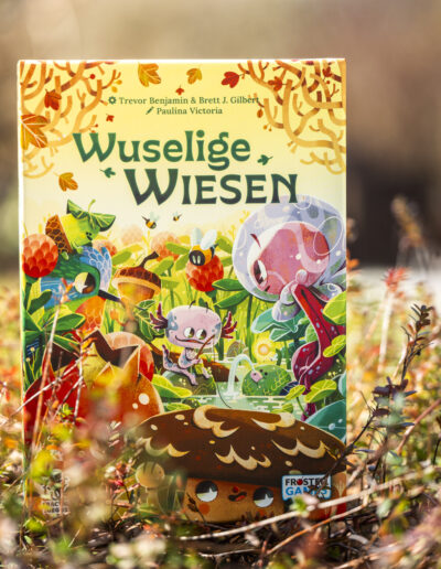 Wuselige Wiesen ist ein entspanntes, aber kniffliges Puzzle-Spiel von Brett J. Gilbert und Trevor Benjamin für 2 bis 4 Personen ab 8 Jahren. In rund 30 Minuten wetteifert ihr darum, die farbenfrohesten und blühendsten Wiesenlandschaften zu erschaffen, um Bienen, Kolibris und andere fantastische wuselige Wesen anzulocken.