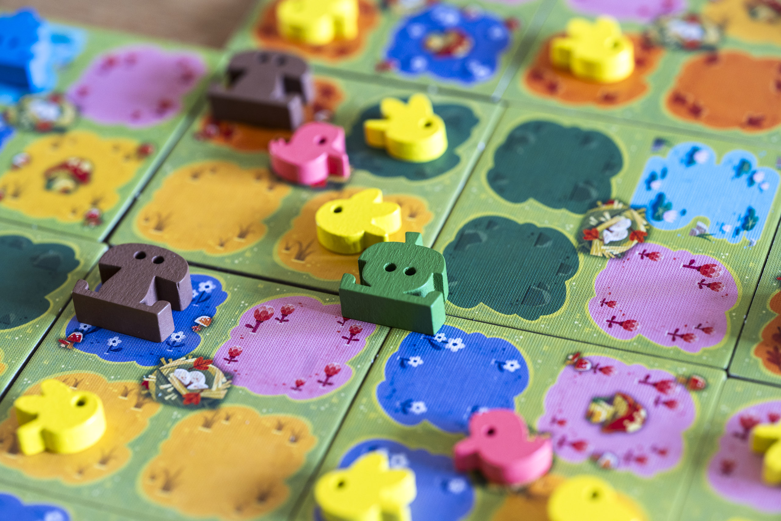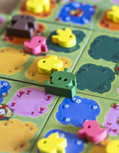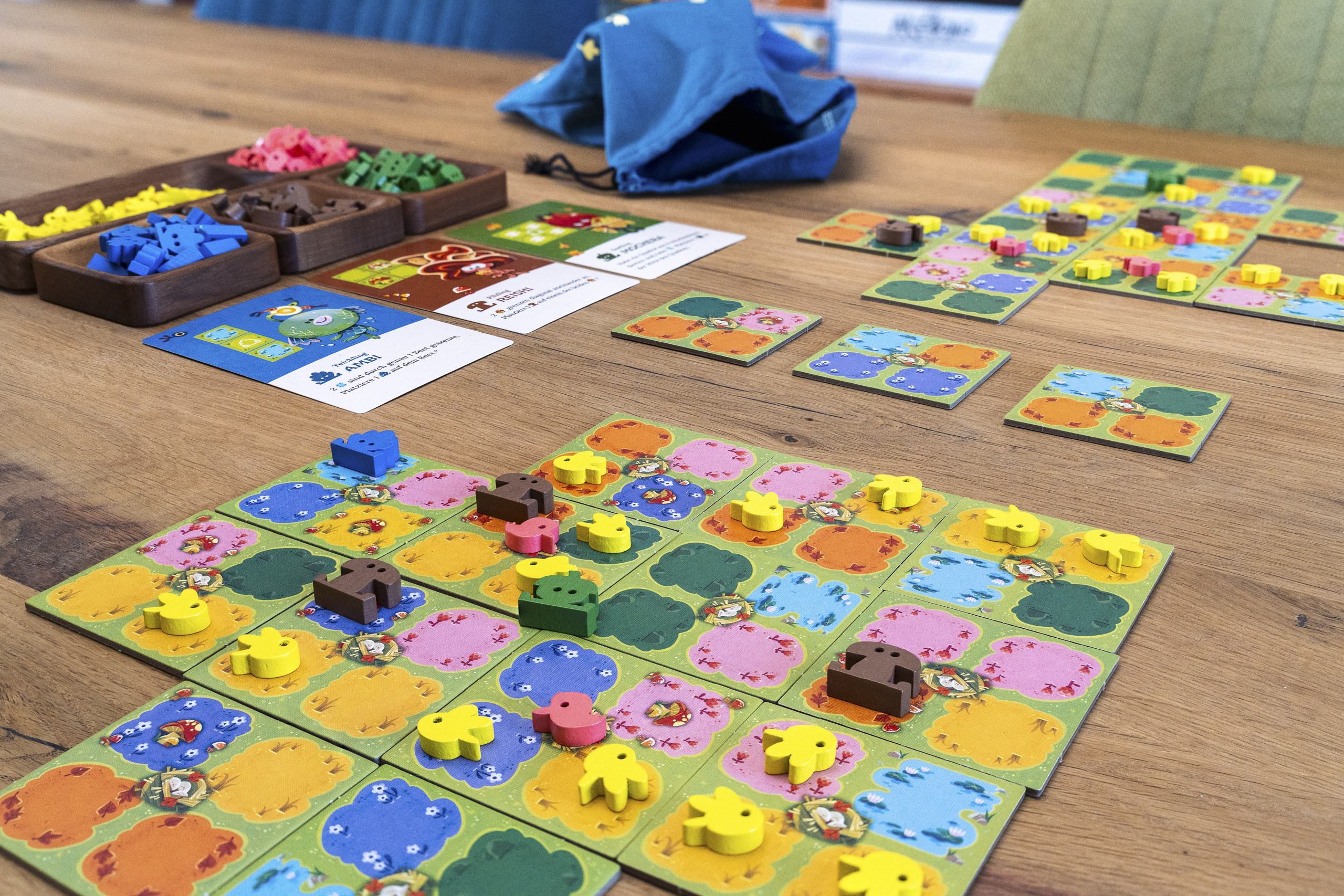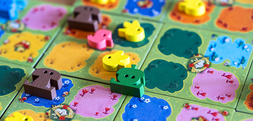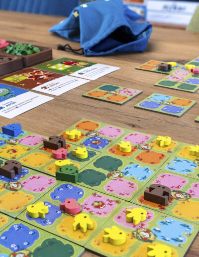 Zusätzlich zu den Tieren geben euch Karten vor, welche Muster und Kombinationen besonders lukrativ sind. So gleicht keine Partie der anderen und ihr müsst immer wieder neu abwägen, welches Plättchen das beste für eure aktuelle Wiese ist.