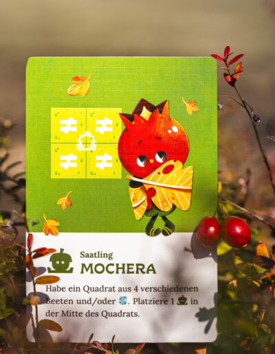 Wer an der Reihe ist, wählt genau ein Plättchen aus der offenen Auslage und puzzelt es an den eigenen Garten an. Euer primäres Ziel ist es dabei, zusammenhängende Flächen der gleichen Landschaftsart zu bilden.