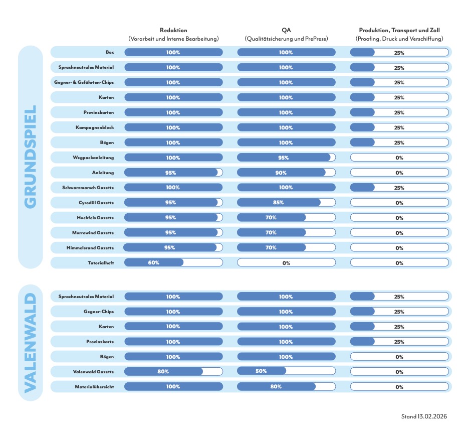 Bis Ende nächster Woche sollen alle Gazettere und Tutorialheft im finalen Proofreading sein.