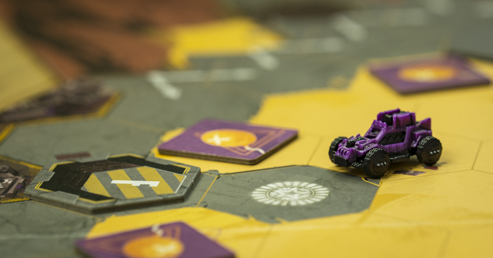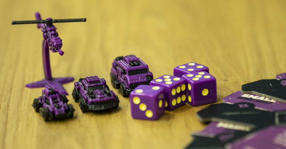 Willkommen in der Wrackedrale erweitert das Gemetzel um einen kompletten Satz violetter Fahrzeuge, Würfel und Spielmaterialien.