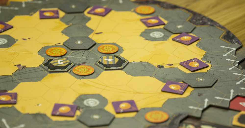 Nachdem du auf einem regulären Streckenabschnitt in die Arena gefahren bist, geht das Chaos los: Auf den Hexfeldern der Wrackedrale sind deine Bewegungen wendiger und du findest allerlei Extras.